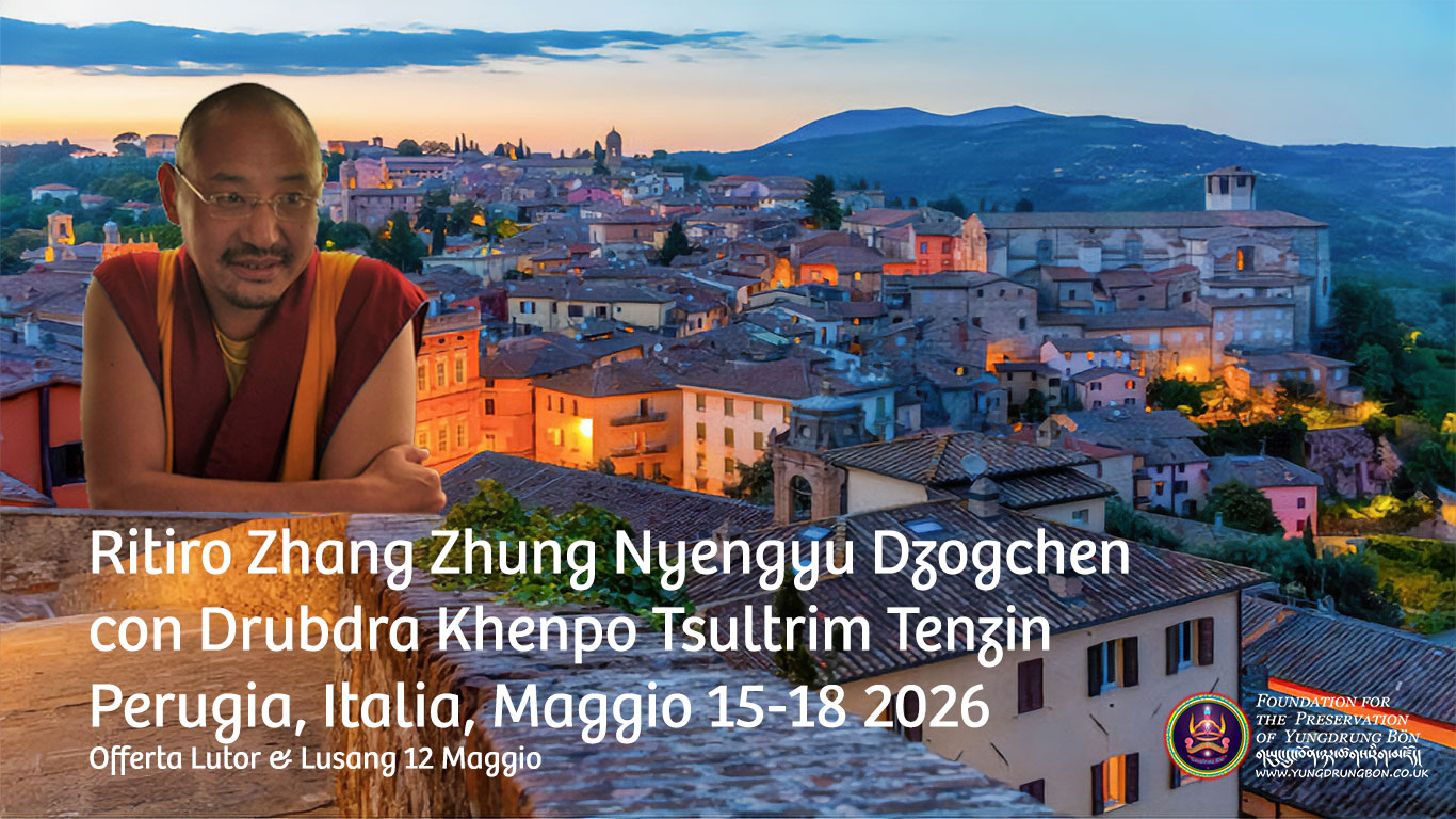 Buone notizie! Drubdra Khenpo guiderà un ritiro di Zhang Zhung Nyengyu in Italia il prossimo Maggio. 12 maggio 2026: Rituale per i Naga sulle rive del possente fiume Tevere 15-18 maggio 2026: insegnamenti e pratica Dzogchen intensivi di Jyadral Jeme, “Senza Azioni, Senza Tracce”, il consiglio di Tapihritsa a Nanghzer Lödpo Lunedì 18 maggio: insegnamenti, trasmissioni lung e spiegazioni sulle pratiche ausiliarie per la prosperità e la protezione Drubdra Khenpo dice: Piu sul testo Jyadral Jeme, Senza Azioni, Senza Tracce (Bya bral rjes med / བྱ་བྲལ་རྗེས་མེད།) è un testo essenziale della Sezione Segreta (Gsang skor / གསང་སྐོར།) di Zhang Zhung[…]