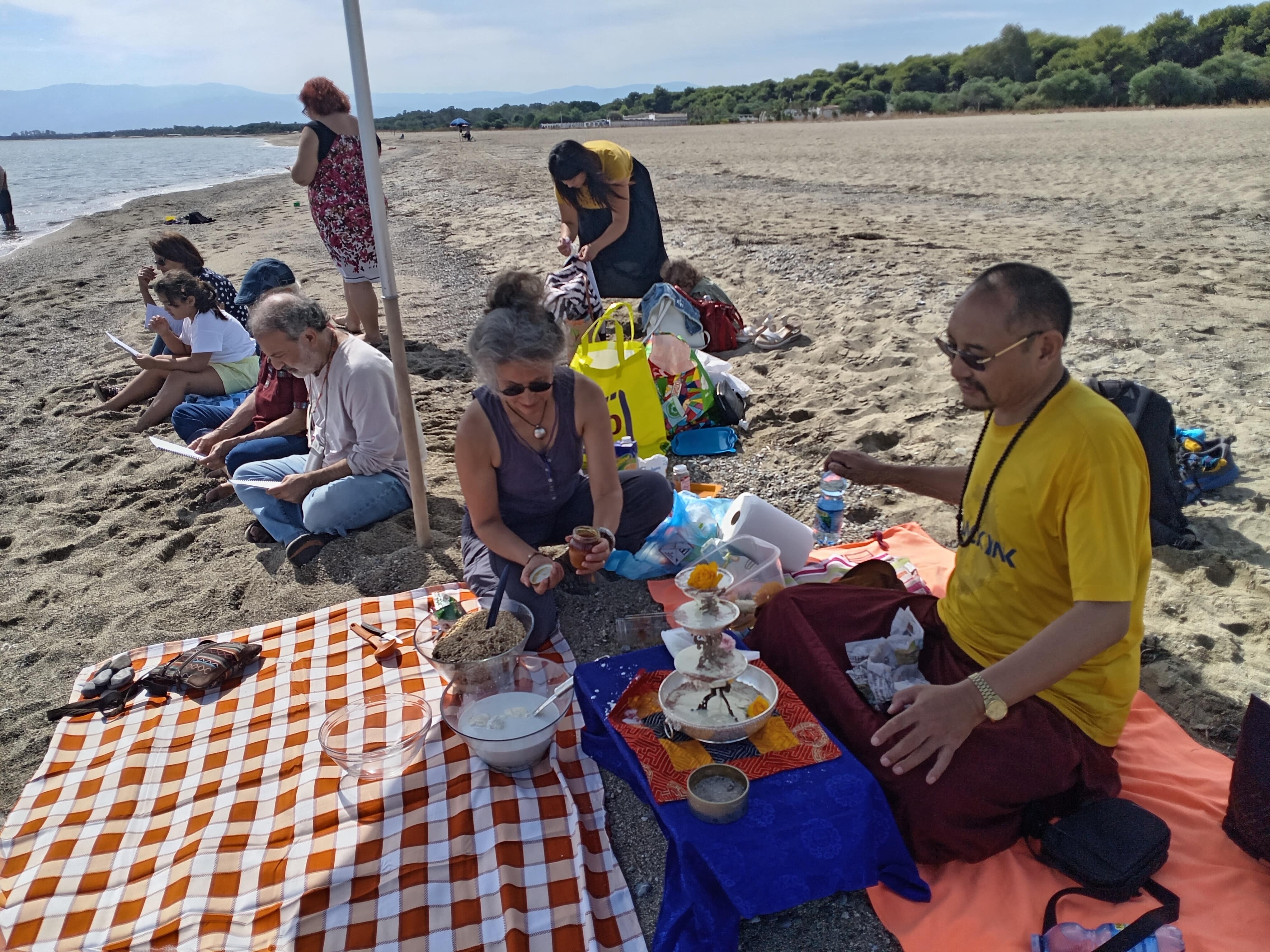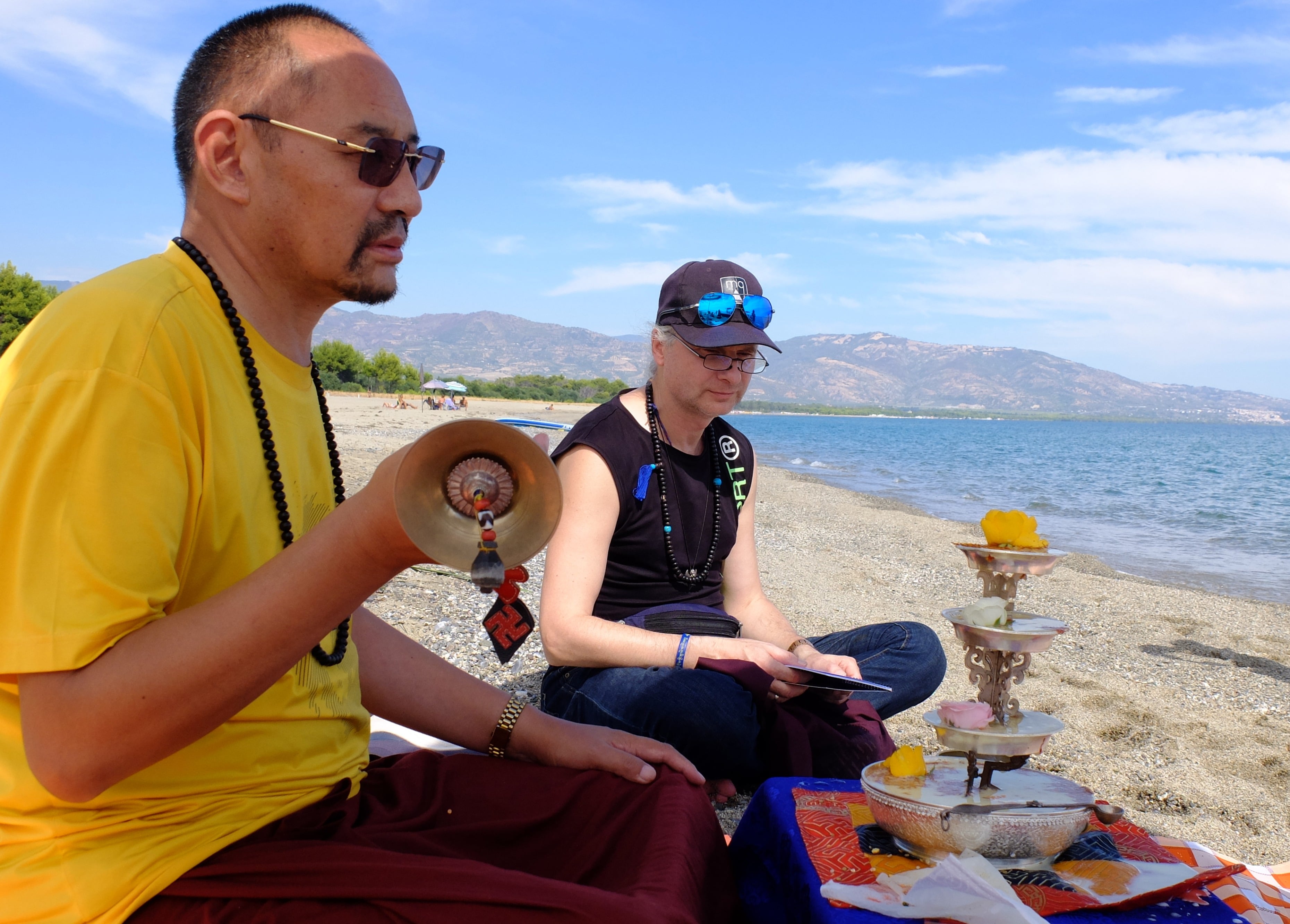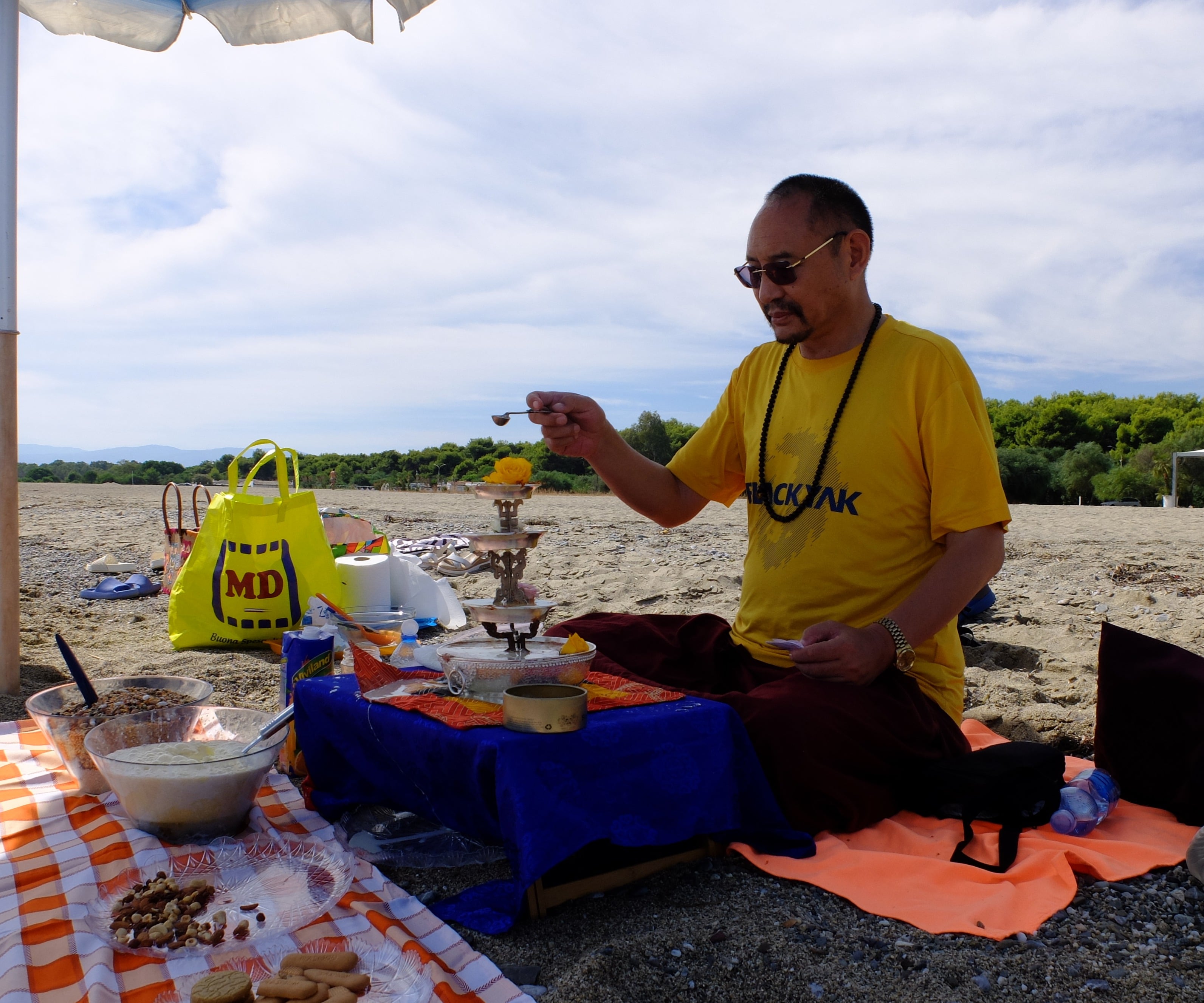 Prima dell’inizio del ritiro principale, Drubdra Khenpo guidò un potente rituale sulle rive della Costa Ionica, un’offerta combinata di Sang e Torma. Era la prima volta che eseguivamo il Lu Tor insieme, e i sogni dimostravano che i Naga della regione erano deliziati da questo rito gioioso.