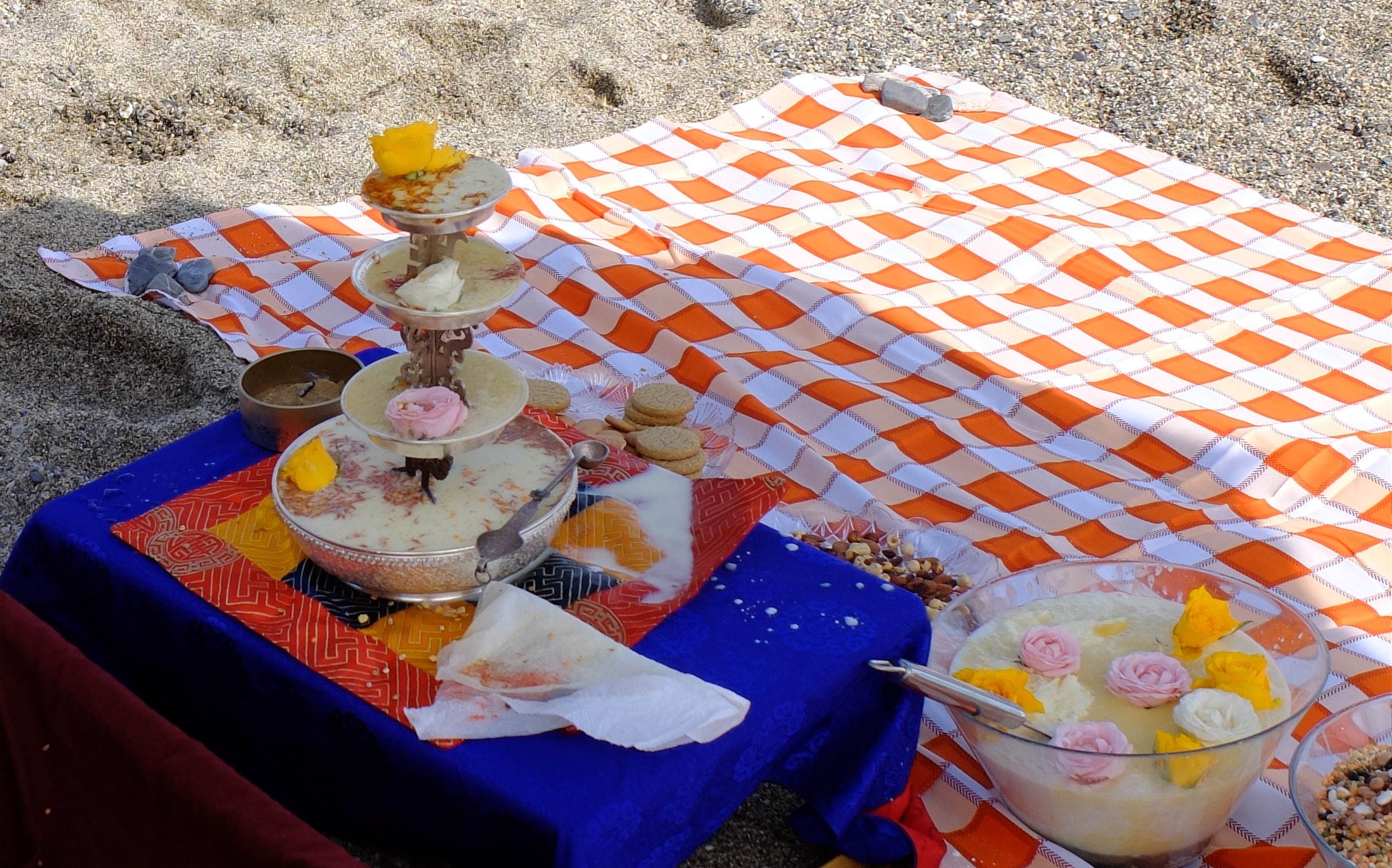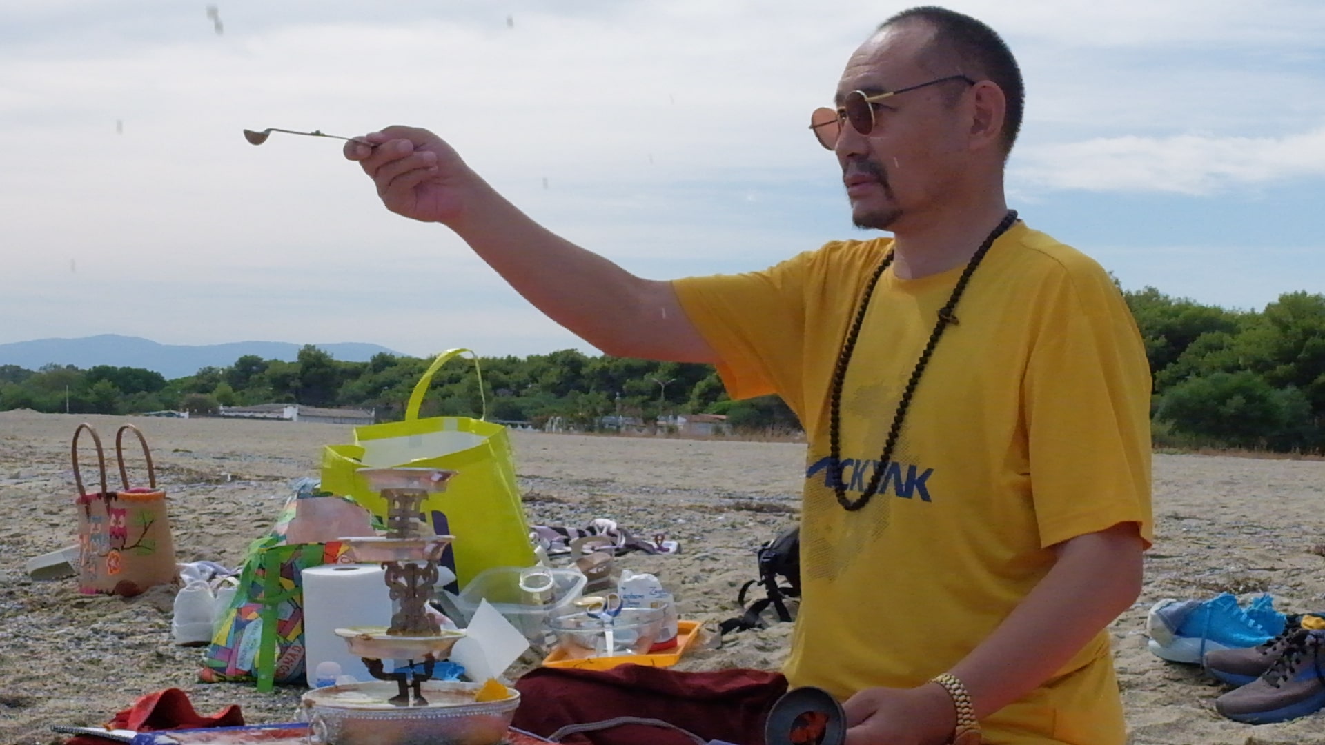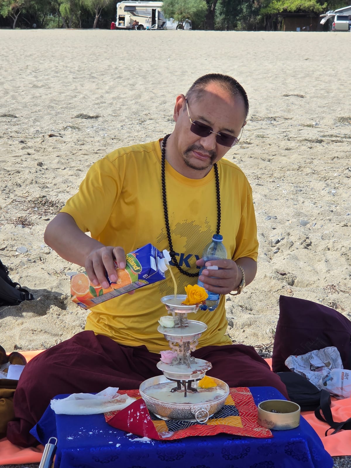 Prima dell’inizio del ritiro principale, Drubdra Khenpo guidò un potente rituale sulle rive della Costa Ionica, un’offerta combinata di Sang e Torma. Era la prima volta che eseguivamo il Lu Tor insieme, e i sogni dimostravano che i Naga della regione erano deliziati da questo rito gioioso.