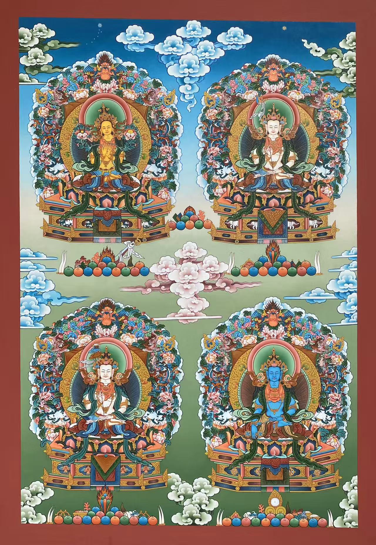 Four Chief Buddhas. Thangka image courtesy of Drubdra Khenpo Tsultrim Tenzin.